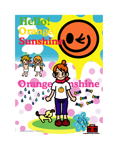 この作品のテーマはJUDY AND MARYの「Hello!OrangeSunshine」という曲を取り扱ったものです。歌詞に出て来るものを登場させました。この曲の元気さやポップな感じを表現したくて、色使いなどもカラフルにしてみました。