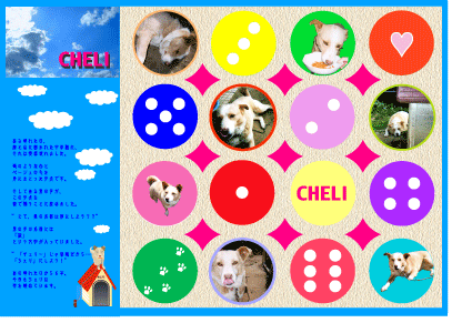 気ままなワンコ、ちぇりの表情に注目です♪カラフルなのが好きなので、色彩やかにしてみました。